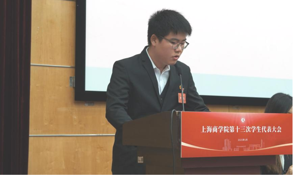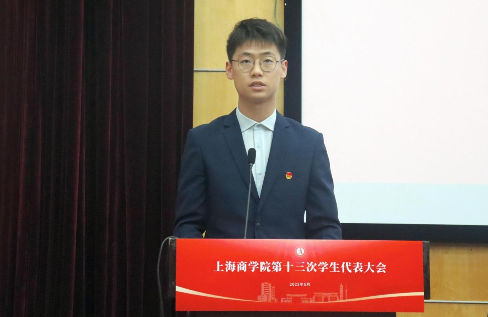 校学生会执行主席吴雨星代表校第十二届学生会作工作报告。在校党委的领导下,在校团委和市学联指导下,上海商学院学生会秉持“全心全意为同学服务”宗旨,坚持党的领导、回归服务主业、锐意深化改革、全面从严治党,各项工作取得良好成效,并在上海高校学生会组织2024年度工作总结评估中再次荣获“优秀”。