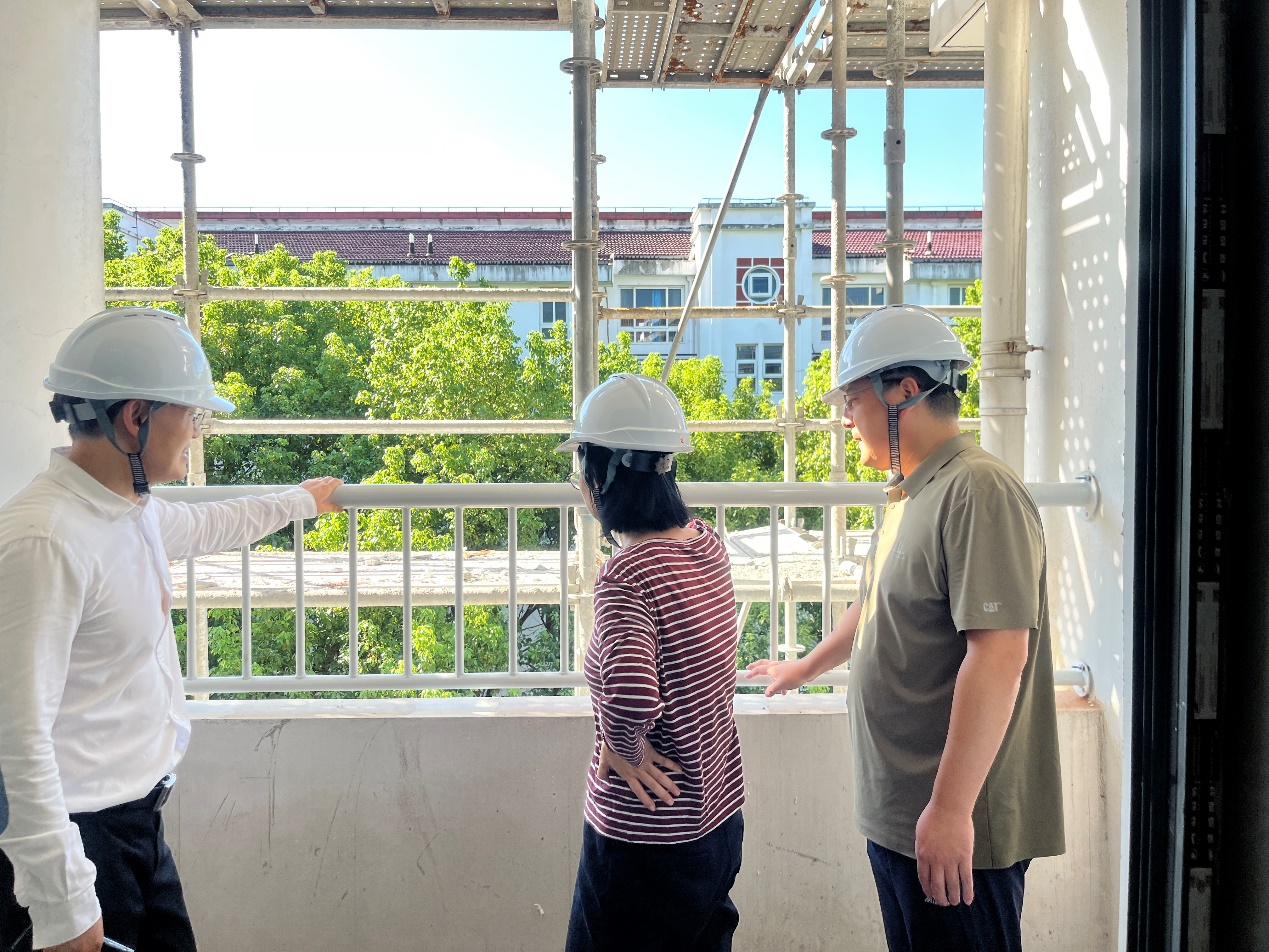 8月19日上午,副校长张绍华带领后勤保障处、基建处相关负责同志深入奉浦校区整体维修一期工程施工现场,实地检查工程推进情况。