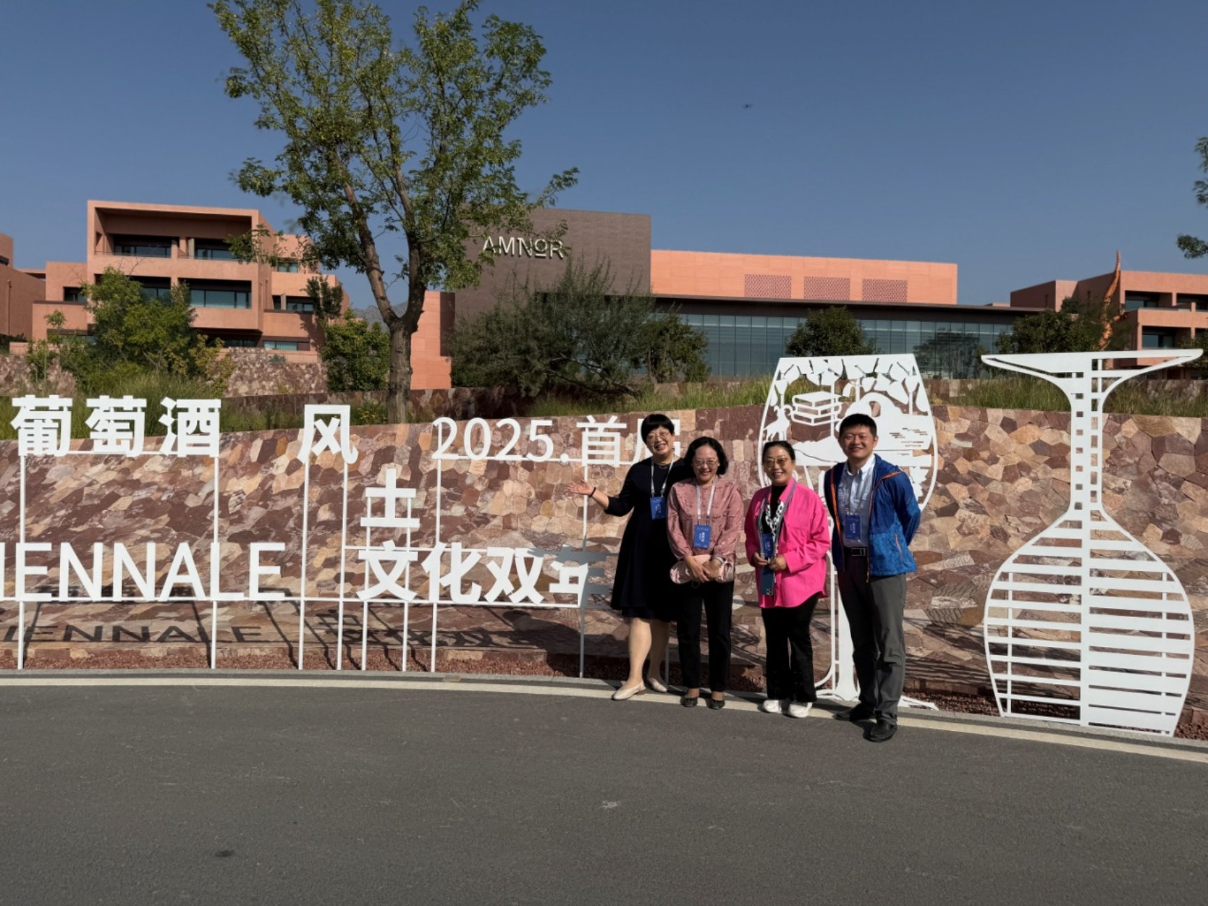 9月8日,代表团前往图兰朵小镇,共同体成员单位宁夏贺兰山东麓葡萄与葡萄酒联合会会长王紫云、副会长兼秘书长田生宇热情接待了代表团。双方就葡萄酒产业发展与微专业建设联动、风土文化融入中国传统文化教育、共同体助力国际葡萄酒旅游目的地建设等方面进行现场讨论。随后,代表团出席了“2025首届葡萄酒风土文化双年展”启幕仪式,参观大地艺术展,参与“风土的要素”研讨会,深入了解葡萄酒风土文化的内涵与价值。