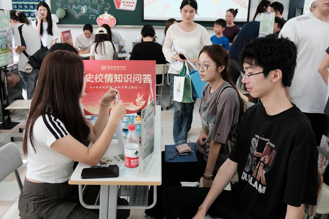 酒店管理学院用心筹备了一系列充满关怀与新意的迎新活动,例如“萌新寻光记”、校史校情知识问答、迎新影像记录、党员服务岗等特色活动。校史校情问答助力新生了解学校,融入学院;迎新影像记录定格新生入学珍贵瞬间,留下专属记忆,也让家长分享校园初印象与对孩子期许,勾勒家校联动图景;党员服务岗中,党员师生以热情关怀为新生铺就成长路,学生党员讲解入党流程,加深新生对党组织的认识,播下责任奉献的种子。与新生在沪上的这场初见,每一份相遇都满含温度,每一次互动都点亮期待,“酒”此翻开属于他们的崭新篇章。