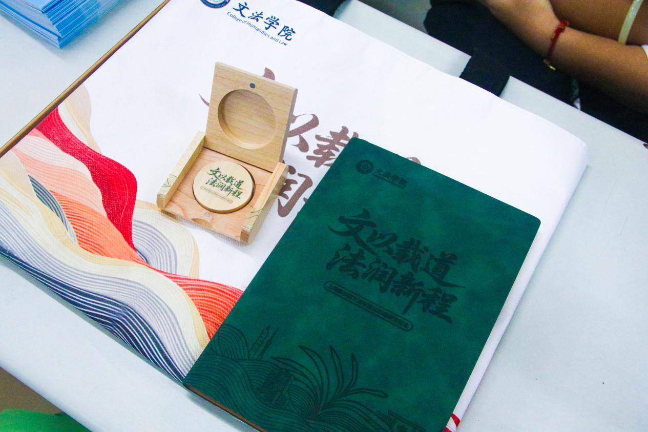 文法学院突出“文以载道 法润新程”主题,学院为每一位新生准备了“新生大礼包”:以学院特意为新生准备的开学文创学习工具为主,结合了文法育人的理念,包含了定制的国风山水帆布包、内页嵌入学院学科特色小贴士的墨绿色主题笔记本、以及木质纹理U盘,融合了“文以载道,法润新程”的院训精神与国风设计元素,彰显了文法学院的人文底蕴、专业特色以及对新生的文化浸润与人文关怀。希望文法新生们能书写属于自己的文法华章,奔赴充满温度与深度的青春征程。