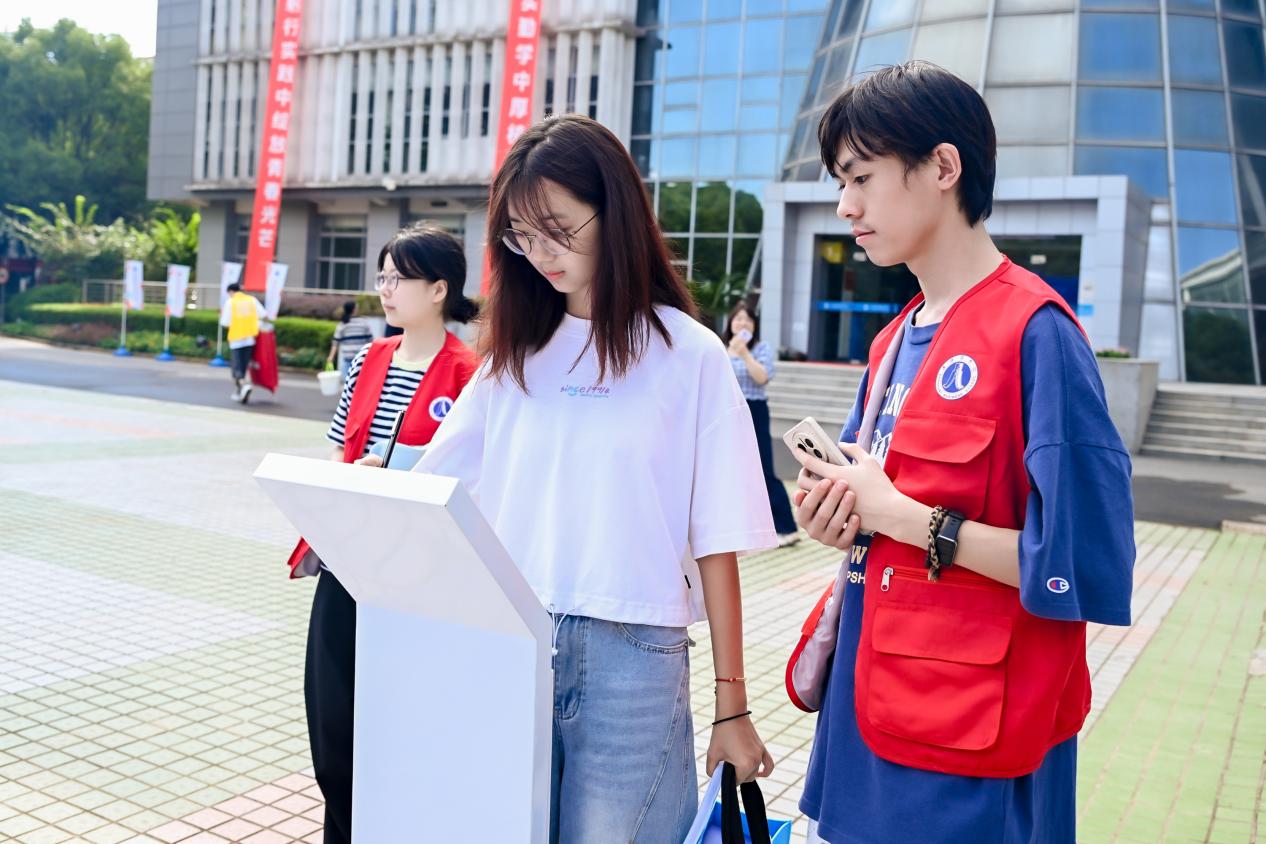 校园内,鲜艳的道旗迎风招展,处处洋溢着热烈而温馨的迎新氛围。身着统一服装的志愿者们精神饱满,高举各学院的欢迎指示牌,活跃在校园的各个角落。“同学你好,请跟我来”、“行李交给我们,请放心!”……一声声亲切的问候,一次次主动的援手,构成了秋日校园最动人的风景。从引导路线、答疑解惑,到协助搬运行李、办理入住手续,志愿者们用真诚的笑容、周到的服务与无私的奉献,让初来乍到的新生们感受到了家一般的温暖与归属,留下了关于上商初印象的美好记忆。