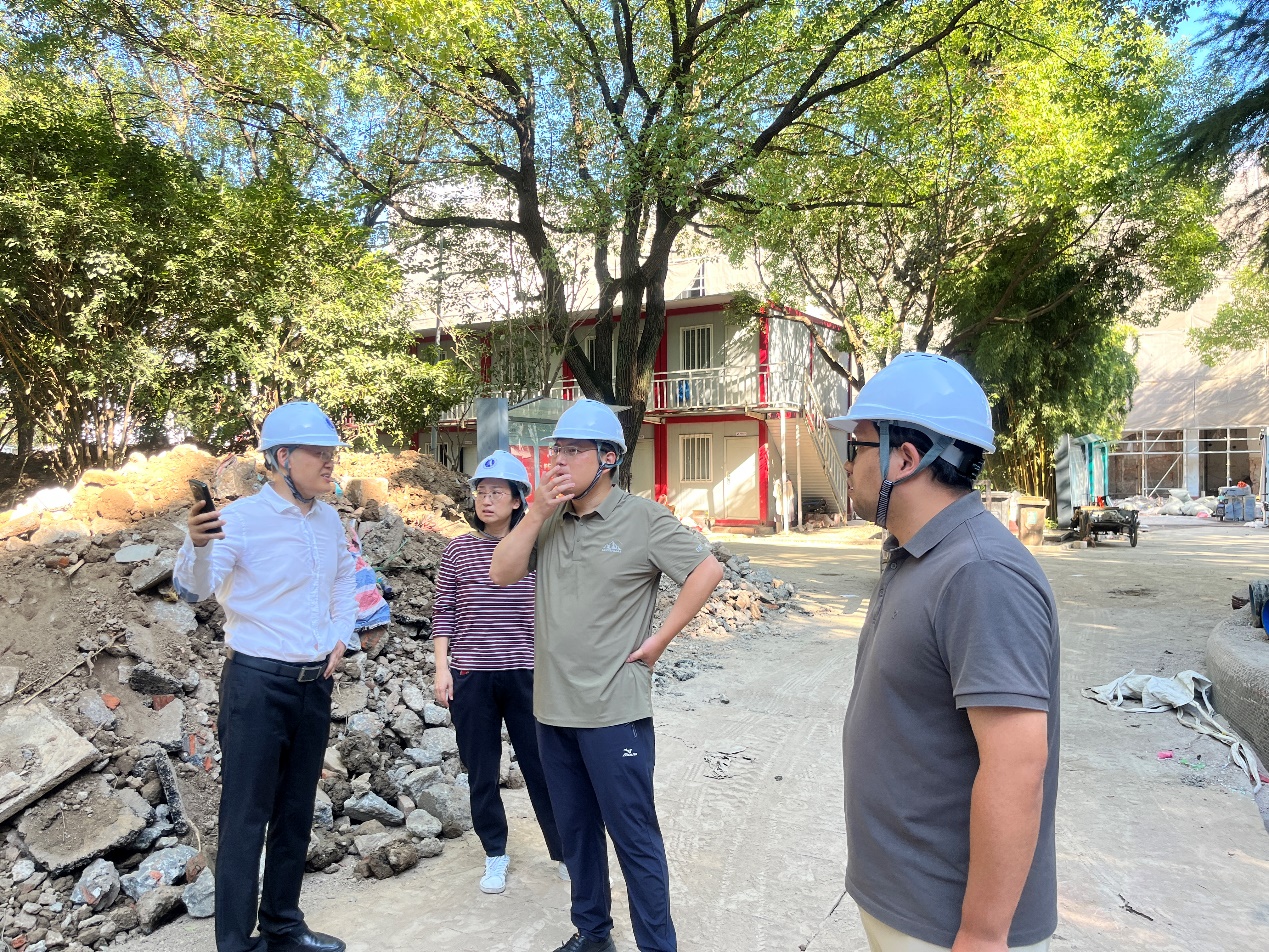 8月19日上午,副校长张绍华带领后勤保障处、基建处相关负责同志深入奉浦校区整体维修一期工程施工现场,实地检查工程推进情况。