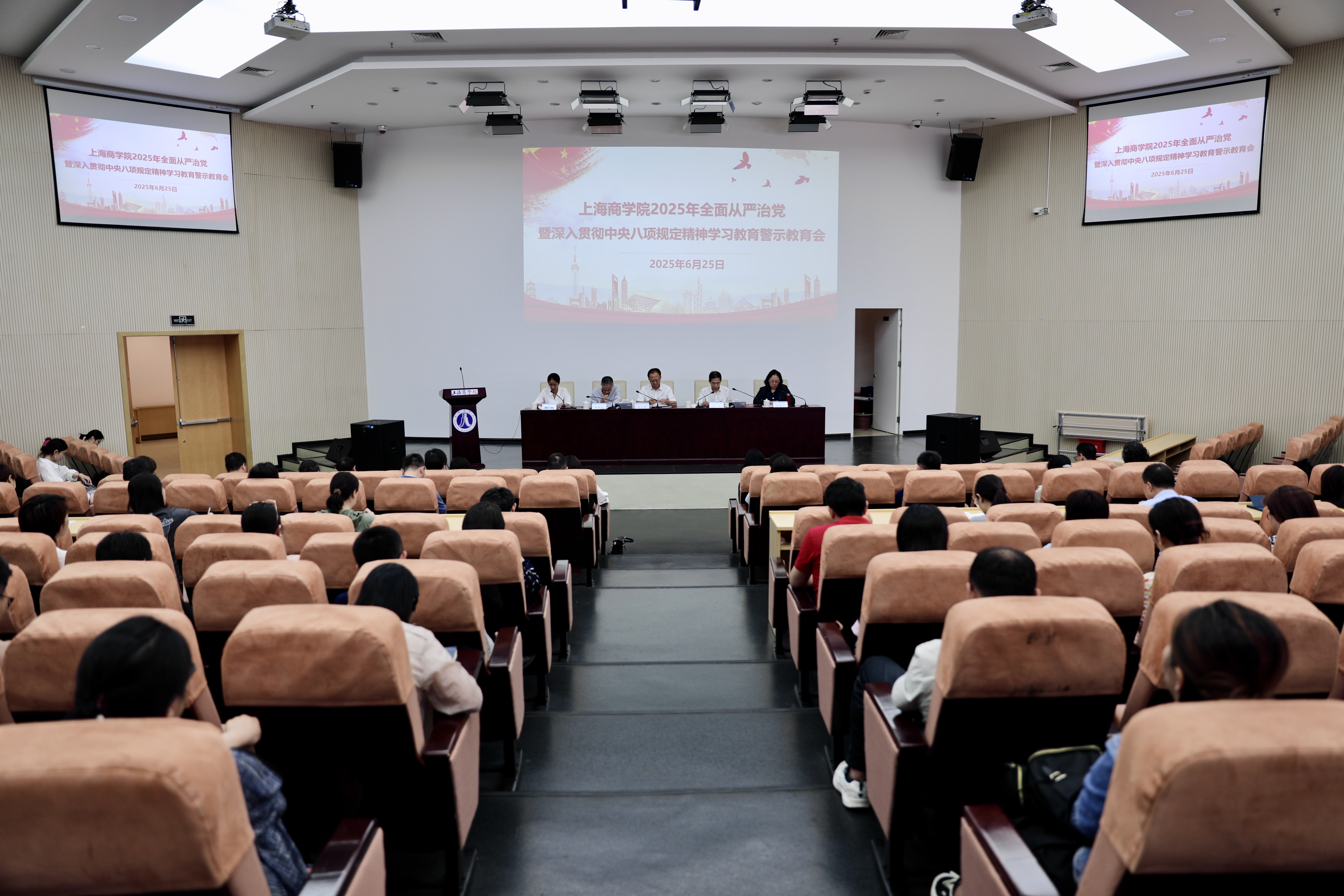 6月25日下午,上海商学院2025年全面从严治党暨深入贯彻中央八项规定精神学习教育警示教育会在中山西路校区召开。会议传达学习了2025年上海市委以及市教卫工作党委系统全面从严治党暨深入贯彻中央八项规定精神学习教育警示教育会精神,总结学校2024年全面从严治党工作,部署2025年重点任务。党委副书记、校长吴忠主持会议。校领导班子成员、中层干部、党风廉政建设监督员出席会议。